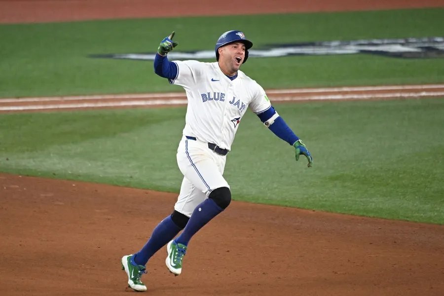 MLB: Playoffs-Marineros de Seattle vs Azulejos de Toronto20 de octubre de 2025; Toronto, Ontario, CAN; El jardinero derecho de los Toronto Blue Jays, George Springer (4), celebra mientras corre las bases después de conectar un jonrón de tres carreras contra los Marineros de Seattle en la séptima entrada durante el séptimo juego de la ronda ALCS para los playoffs de la MLB de 2025 en el Rogers Center. Crédito obligatorio: Dan Hamilton-Imagn Images
