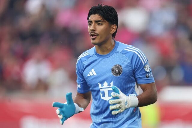 MLS: Inter Miami CF vs New York Red Bulls19 de julio de 2025; Harrison, Nueva Jersey, Estados Unidos; El portero del Inter Miami CF, Rocco Ríos Novo (34), en acción durante la primera mitad contra los New York Red Bulls en el Sports Illustrated Stadium. Crédito obligatorio: Vincent Carchietta-Imagn Images