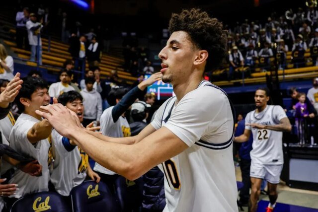 2 de diciembre de 2025; Berkeley, California, Estados Unidos; El guardia de los Golden Bears de California, Justin Pippen (10), celebra con los fans después del partido contra los Utah Utes en Haas Pavilion. Crédito obligatorio: Bob Kupbens-Imagn Images Justin Pippen rápidamente se está haciendo un nombre en Cal, que con 7-1 ha tenido su mejor comienzo desde 2016-17.