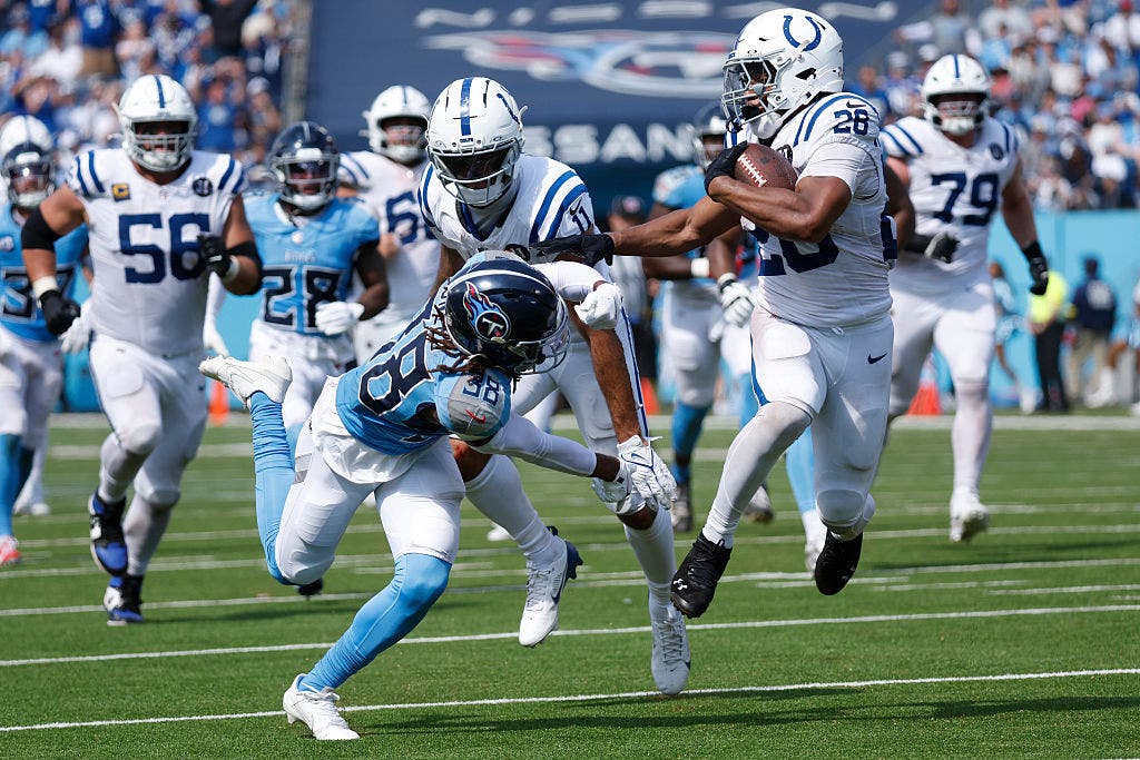 En la Semana 10, la superestrella de los Colts tuvo la mejor actuación terrestre en un solo juego de un jugador de la NFL esta temporada: 244 yardas terrestres y tres touchdowns terrestres, incluido el ganador, en la victoria de Indianápolis por 31-25 en tiempo extra sobre Atlanta en Berlín. Taylor también tuvo tres recepciones para 42 yardas.