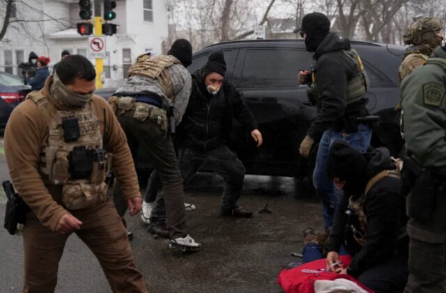 En Minneapolis, aún continúan grandes protestas y enfrentamientos con agentes de inmigración, y al menos 3.000 fuerzas federales de inmigración se han movilizado en la ciudad. Los videos han capturado a agentes de ICE derribando puertas de casas y sacando a personas de sus autos.