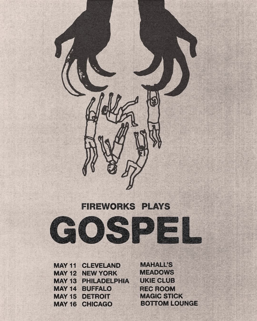 Fuegos artificiales‘segundo álbum revolucionario Evangelio cumple 15 años en 2026 y lo celebrarán tocándolo completo en algunos raros espectáculos de primavera. Las paradas incluyen Cleveland (Mahal el 11 de mayo), Brooklyn (Los prados el 12 de mayo), Filadelfia (Club Ukie el 13 de mayo), búfalo (Sala de recreación el 14 de mayo), Detroit (Palo mágico el 15 de mayo) y Chicago (Salón inferior el 16 de mayo), y entradas ya están a la venta.