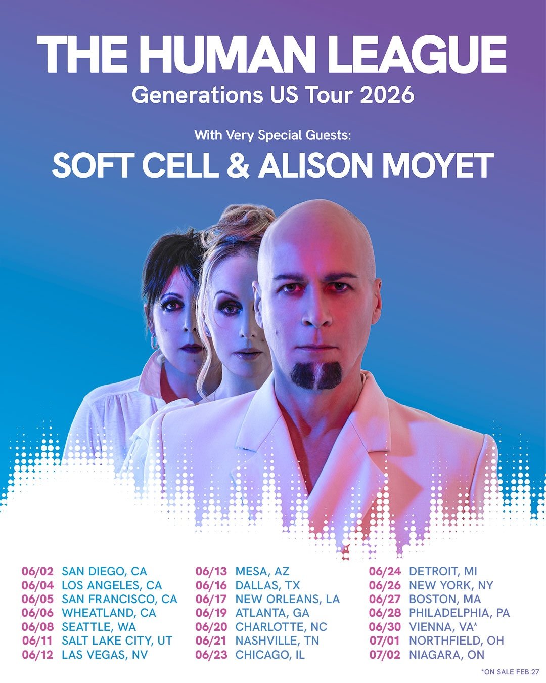 “Desde nuestro debut en 1980, siempre hemos disfrutado de una increíble bienvenida en Estados Unidos y estamos muy emocionados de embarcarnos en una gira de costa a costa por Estados Unidos en 2026”, dice Philip Oakey de The Human League. “Compartir escenario en esta visita serán dos de los mejores y más emblemáticos actos musicales de nuestra generación, Soft Cell y Alison Moyet. Ambas son favoritas personales. Estamos deseando formar parte del cartel de nuestra vida y, una vez más, tener la oportunidad de tocar en algunos de nuestros lugares más queridos en el mundo. No podemos esperar”.