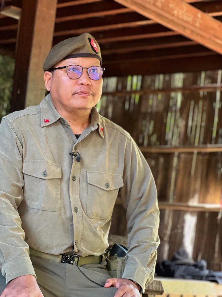 “Las próximas elecciones de la junta militar son una farsa. Son unas elecciones montadas y falsas diseñadas para mantener el poder que han robado”, dice Tin Oo, comandante de las Fuerzas de Defensa del Pueblo, uno de los grupos de combatientes que actualmente intentan expulsar a las fuerzas gubernamentales de la zona.