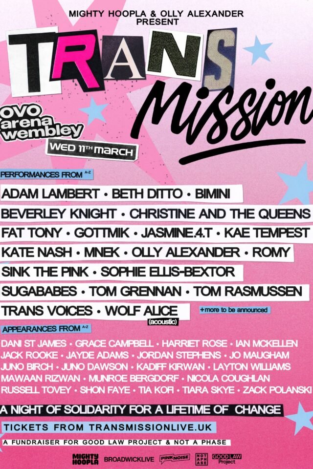 Anunciado hoy (28 de noviembre), en el concierto Mighty Hoopla y Olly Alexander se unen para seleccionar una programación, en apoyo de Good Law Project y la organización benéfica liderada por personas trans Not A Phase.