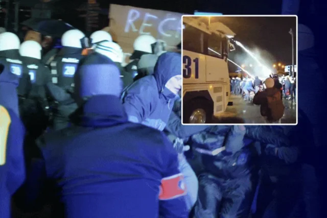 MIRAR. La policía carga con un cañón de agua y arresta a un manifestante ante la cámara VTM NEWS