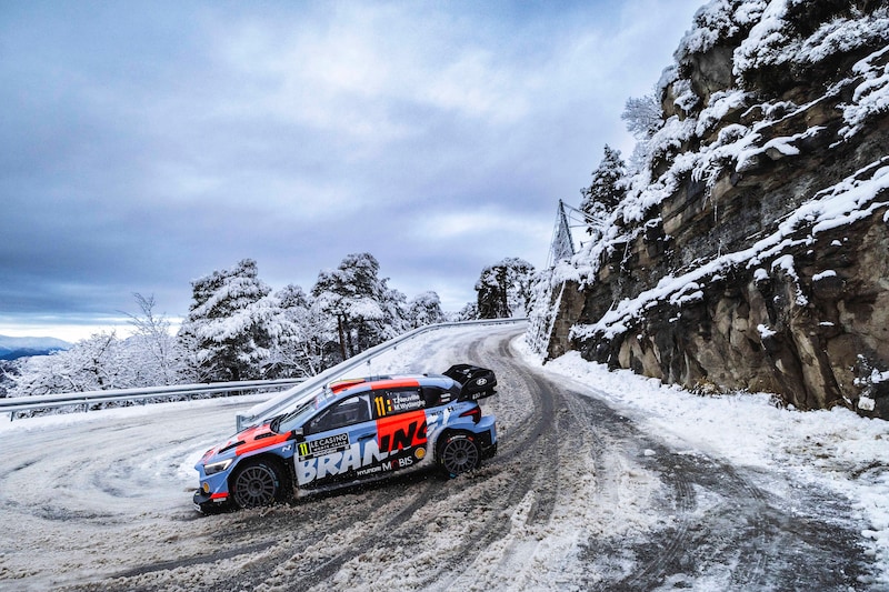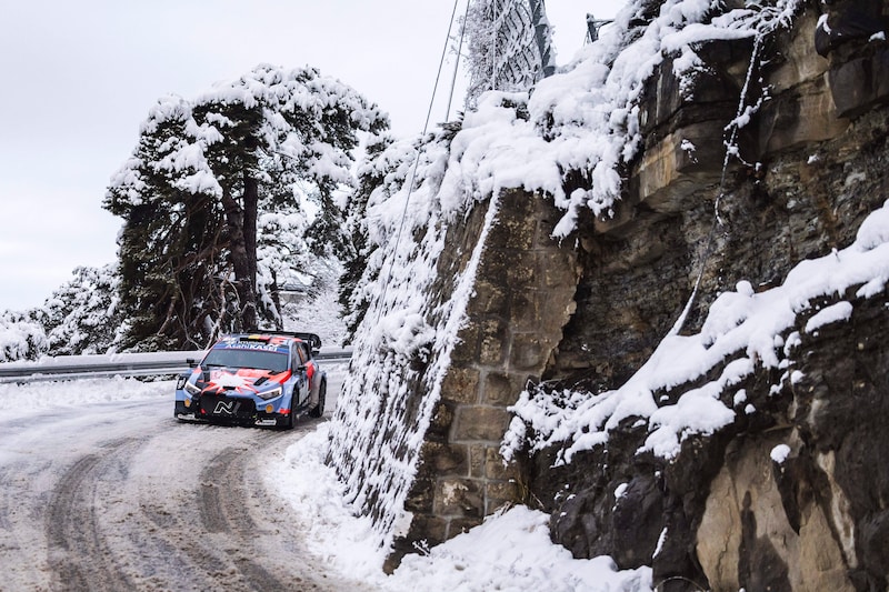 Thierry Neuville (37) finalizó quinto en el Rally de Montecarlo en condiciones invernales. La victoria y el liderato fueron para el sueco Oliver Solberg (24).