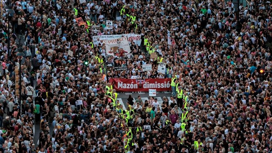 Al menos unas 50.000 personas han marchado este sábado en València, según cifras de Delegación de Gobierno. Han exigido justicia y la dimisión de Carlos Mazón la misma semana en la que nuevos testimonios inéditos apuntalan la tesis de que no fue a su despacho tras salir de El Ventorro el día de la dana del pasado 29 de octubre.