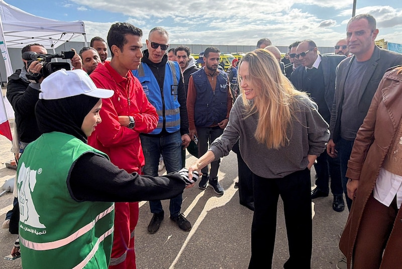 Angelina Jolie, de 50 años, llegó el viernes al paso fronterizo de Rafah. La actriz estadounidense, que también es ex embajadora de ACNUR (la agencia de las Naciones Unidas para los refugiados), visita la zona junto a una delegación del Departamento de Estado americano.