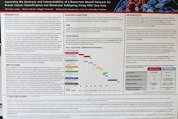 “Mi modelo de IA detectó que el gen transferrina (esencial para mover el hierro a través del cuerpo) tiene un impacto potencialmente significativo en lo que respecta al desarrollo del cáncer de mama y la desregulación genética involucrada en el cáncer de mama. Encontré toda esta investigación secundaria que validó los resultados arrojados por mi modelo.