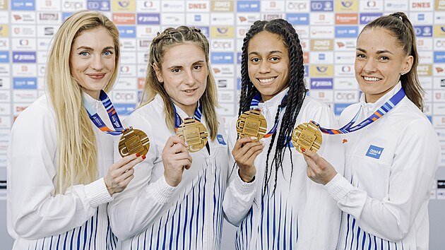 medallistas de bronce del campeonato europeo de pista cubierta en Holanda: Nikoleta Jchov, Lada Vondrov, Lurdes Gloria Manuel y Tereza Petrilkov.