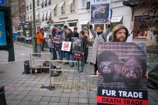 El Movimiento Belga Anti-pieles (BAM) tomó medidas el sábado alrededor de las 13:00 horas. en las sucursales de Bruselas de las marcas de lujo Dior y Louis Vuitton. Una docena de activistas denunciaron la implicación de las empresas en la venta de pieles.