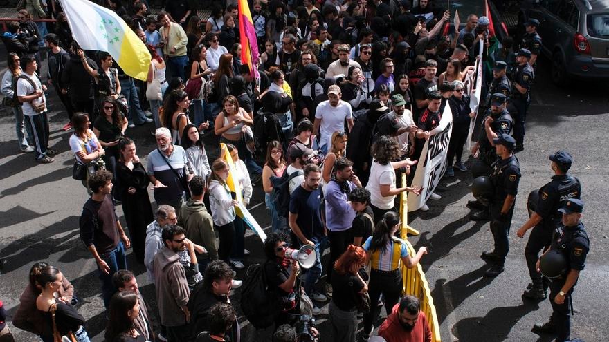 Además, Podemos Canarias asegura que parte del estudiantado que protestaba contra el acto fue retenido dentro del recinto universitario “bajo amenaza de carga policial si intentaban moverse”.