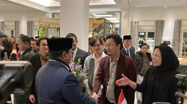 Mientras tanto, en el hotel donde se hospedaba, se vio a varios miembros de la diáspora dando la bienvenida a la llegada de Prabowo. Uno de los niños, llamado Tanaya Apriandi (7), incluso entregó flores especiales para darle la bienvenida a Prabowo.