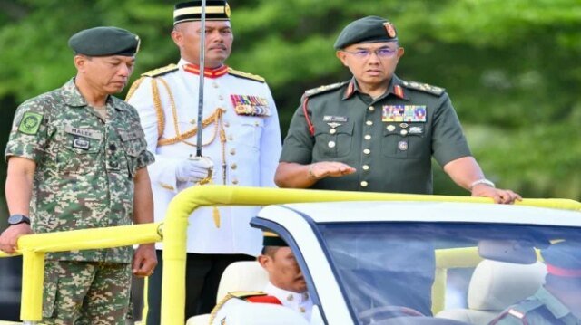 El exjefe de las Fuerzas Armadas de Malasia, Mohd Nizam Jaffar (de pie a la derecha)