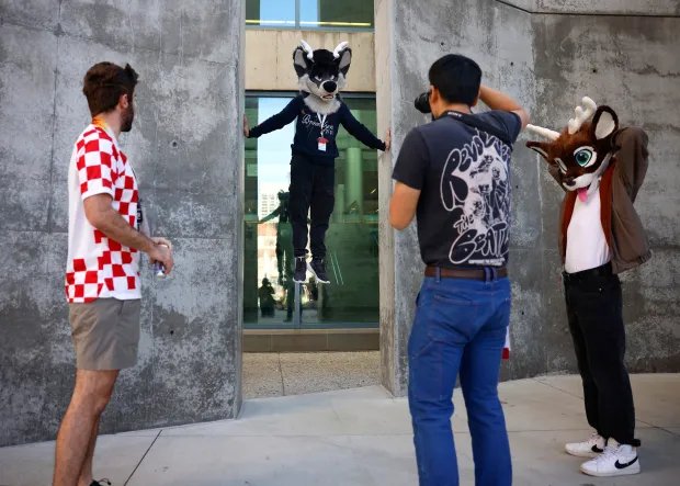 Derix, de Calgary, Canadá, que prefirió dar solo el nombre de su personaje, posa para una fotografía en Further Confusion, también conocida como FurCon, afuera del Centro de Convenciones San José McEnery en el centro de San José, California, el domingo 18 de enero de 2026. (Nhat V. Meyer/Bay Area News Group) Razer, izquierda, y Quince, ambos de Bakersfield, que prefirieron dar solo los nombres de sus personajes, posan para una fotografía en el fotomatón de Further Confusion, también conocido como FurCon, en el Centro de Convenciones San José McEnery en el centro de San José, California, el domingo 18 de enero de 2026. FurCon tuvo un tema de playa este año llamado “El episodio de la playa”. (Nhat V. Meyer/Grupo de Noticias del Área de la Bahía) Derix, de Calgary, Canadá, que prefirió dar solo el nombre de su personaje, salta después de que le tomaran una fotografía en Further Confusion, también conocida como FurCon, afuera del Centro de Convenciones San José McEnery en el centro de San José, California, el domingo 18 de enero de 2026. (Nhat V. Meyer/Bay Area News Group) Demetrius, que prefirió dar solo el nombre de su personaje, “grazna” en Further Confusion, también conocido como FurCon, afuera del Centro de Convenciones San José McEnery en el centro de San José, California, el domingo 18 de enero de 2026. (Nhat V. Meyer/Bay Area News Group) Razer, izquierda, y Quince, ambos de Bakersfield, que prefirieron dar solo los nombres de sus personajes, juegan en Further Confusion, también conocido como FurCon, en el Centro de Convenciones San Jose McEnery en el centro de San José, California, el domingo 18 de enero de 2026. FurCon tuvo un tema de playa este año llamado “The Beach Episodio”. (Nhat V. Meyer/Grupo de Noticias del Área de la Bahía) Los asistentes buscan vendedores en Further Confusion, también conocido como FurCon, en el Centro de Convenciones San José McEnery en el centro de San José, California, el domingo 18 de enero de 2026. (Nhat V. Meyer/Bay Area News Group) FluxPaw, de San Diego, que prefirió dar solo el nombre de su personaje, juega con un ovillo de lana en Further Confusion, también conocido como FurCon, afuera del Centro de Convenciones San José McEnery en el centro de San José, California, el domingo 18 de enero de 2026. (Nhat V. Meyer/Bay Area News Group) Quince, de Bakersfield, que prefirió dar solo el nombre de su personaje, juega con bloques en Further Confusion, también conocido como FurCon, en el Centro de Convenciones San Jose McEnery en el centro de San José, California, el domingo 18 de enero de 2026. FurCon tuvo un tema de playa este año llamado “The Beach Episodio”. (Nhat V. Meyer/Grupo de Noticias del Área de la Bahía) FluxPaw, izquierda, de San Diego, tiene una foto tomada por Antwelm, de Seattle, prefirieron dar solo los nombres de sus personajes, en Further Confusion, también conocido como FurCon, afuera del Centro de Convenciones San José McEnery en el centro de San José, California, el domingo 18 de enero de 2026. (Nhat V. Meyer/Bay Area News Group) Razer, izquierda, y Quince, ambos de Bakersfield, que prefirieron dar solo los nombres de sus personajes, juegan en una orca inflable en Further Confusion, también conocida como FurCon, en el Centro de Convenciones San José McEnery en el centro de San José, California, el domingo 18 de enero de 2026. FurCon tuvo un tema de playa este año llamado “El episodio de la playa”. (Nhat V. Meyer/Grupo de Noticias del Área de la Bahía) FluxPaw, de San Diego, que prefirió dar solo el nombre de su personaje, recibe un abrazo en Further Confusion, también conocido como FurCon, afuera del Centro de Convenciones San José McEnery en el centro de San José, California, el domingo 18 de enero de 2026. (Nhat V. Meyer/Bay Area News Group) Derix, de Calgary, Canadá, que prefirió dar solo el nombre de su personaje, se toma una fotografía en Further Confusion, también conocida como FurCon, afuera del Centro de Convenciones San José McEnery en el centro de San José, California, el domingo 18 de enero de 2026. (Nhat V. Meyer/Bay Area News Group) Un personaje verde sale del Centro de Convenciones McEnery de San José en Further Confusion, también conocido como FurCon, en el centro de San José, California, el domingo 18 de enero de 2026. (Nhat V. Meyer/Bay Area News Group) Razer, de Bakersfield, que prefirió dar solo el nombre de su personaje, juega con bloques en Further Confusion, también conocido como FurCon, en el Centro de Convenciones San Jose McEnery en el centro de San José, California, el domingo 18 de enero de 2026. (Nhat V. Meyer/Bay Area News Group) FluxPaw, izquierda, de San Diego, y Demetrius, sin ubicación dada, quienes prefirieron dar solo los nombres de sus personajes, se abrazan para una foto en Further Confusion, también conocida como FurCon, afuera del Centro de Convenciones San José McEnery en el centro de San José, California, el domingo 18 de enero de 2026. (Nhat V. Meyer/Bay Area News Group) “Animal Skull Masks” de Eric Strother en Further Confusion, también conocido como FurCon, en el Centro de Convenciones San Jose McEnery en el centro de San José, California, el domingo 18 de enero de 2026. (Nhat V. Meyer/Bay Area News Group)