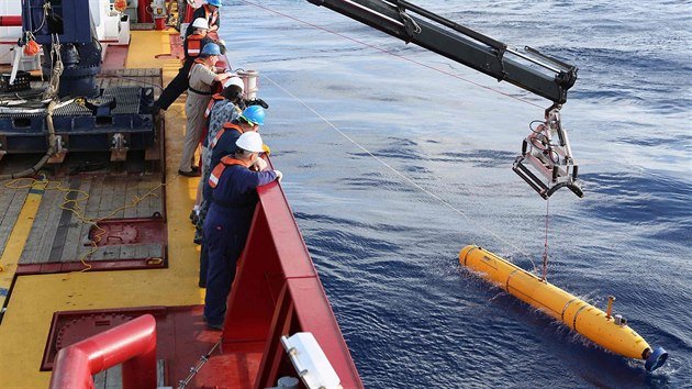 La tripulación australiana del barco Ocean Shield lanzó automáticamente el submarino Bluefin-21 de la marina estadounidense a las profundidades del Océano Índico (14 de abril de 2014).