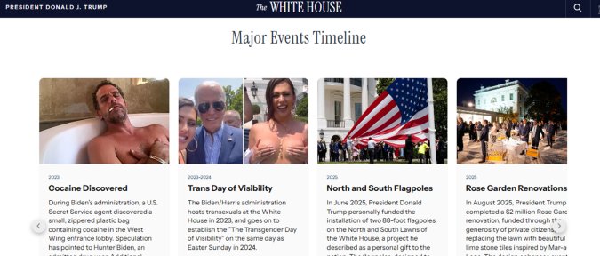 La Casa Blanca provocó una ola de controversia tras publicar una versión de su “cronología de eventos importantes” en el sitio web oficial del gobierno de Donald Trump, donde se destaca escándalos vinculados a administraciones demócratas anteriores.