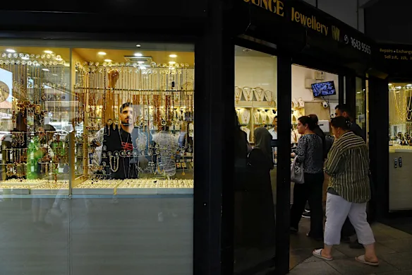 Arduen Shnaishel de Ounce Jewellery en Auburn muestra algunas de las piezas de oro de su tienda. Crédito: Kate Geraghty