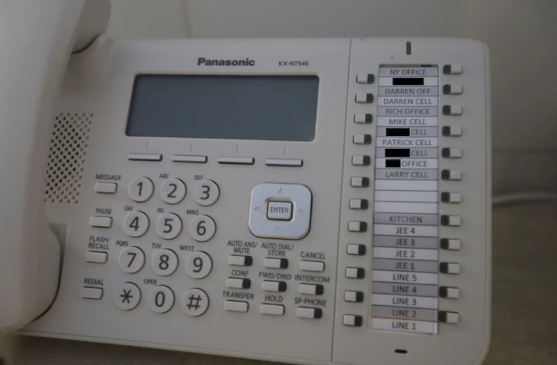 Las imágenes muestran varios dormitorios y baños, incluida una habitación con un llamativo sillón de dentista y mascarillas en la pared. También hay un teléfono fijo con nombres como Darren, Rich, Mike, Patrick y Larry en los atajos.