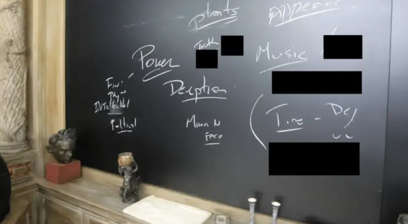 Además, los vídeos dan una idea del lujoso entorno de la isla, con una villa rodeada de piscina, palmeras y senderos sinuosos con vistas al océano. Una de las fotografías muestra una sala de estudio con una pizarra en la que están escritas palabras como “poder”, “engaño”, “conspiraciones” y “política”.