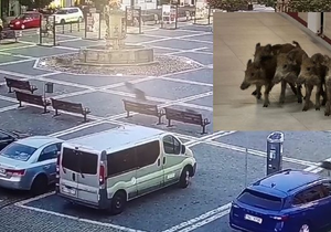 Un grupo de jóvenes cerdos salvajes corrió por el centro de Česká Lípa e incluso entró en el teatro.