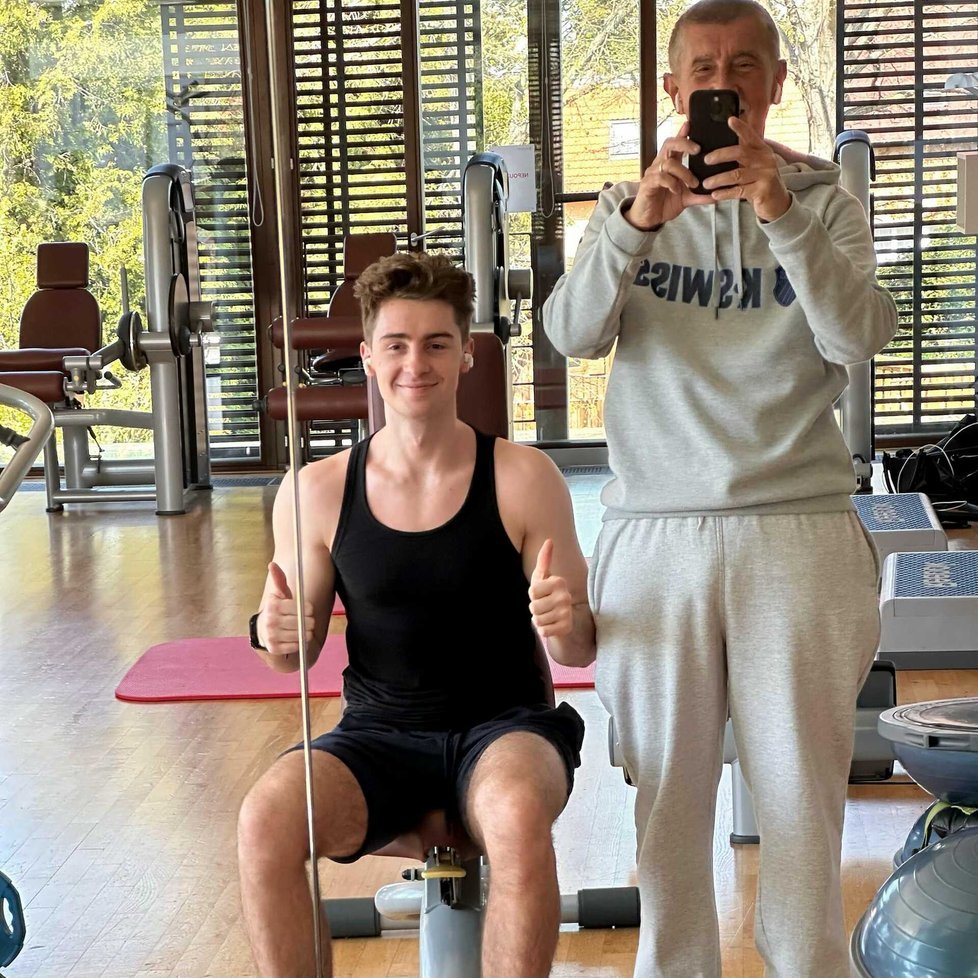 Andrej Babiš (ANO) en el gimnasio con su hijo Frederik | Facebook – A. Babiš