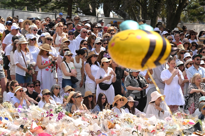 Mucha gente se reunió temprano en la famosa playa cerca de Sydney, donde la semana pasada hombres armados abrieron fuego contra una multitud durante la celebración de Hanukkah, un importante festival judío. Los asistentes formaron un círculo silencioso en la arena. Las banderas de todo el país estarán a media asta el domingo con motivo del llamado ‘Día de la Reflexión Nacional’, como se muestra en la foto de abajo.