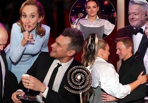 Monika Absolonová y Jakub Svoboda en la fiesta posterior al Ruiseñor checo