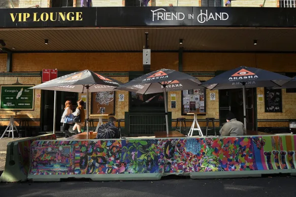 El Friend in Hand Hotel en Glebe es uno de los cientos de locales con licencia a los que se les permite tener un área de comedor al aire libre.Crédito: Kate Geraghty