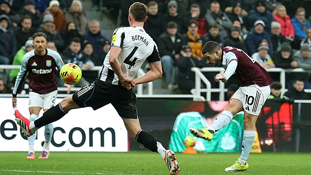 Emiliano Buenda (derecha) del Aston Villa marcó un gol contra el Newcastle.