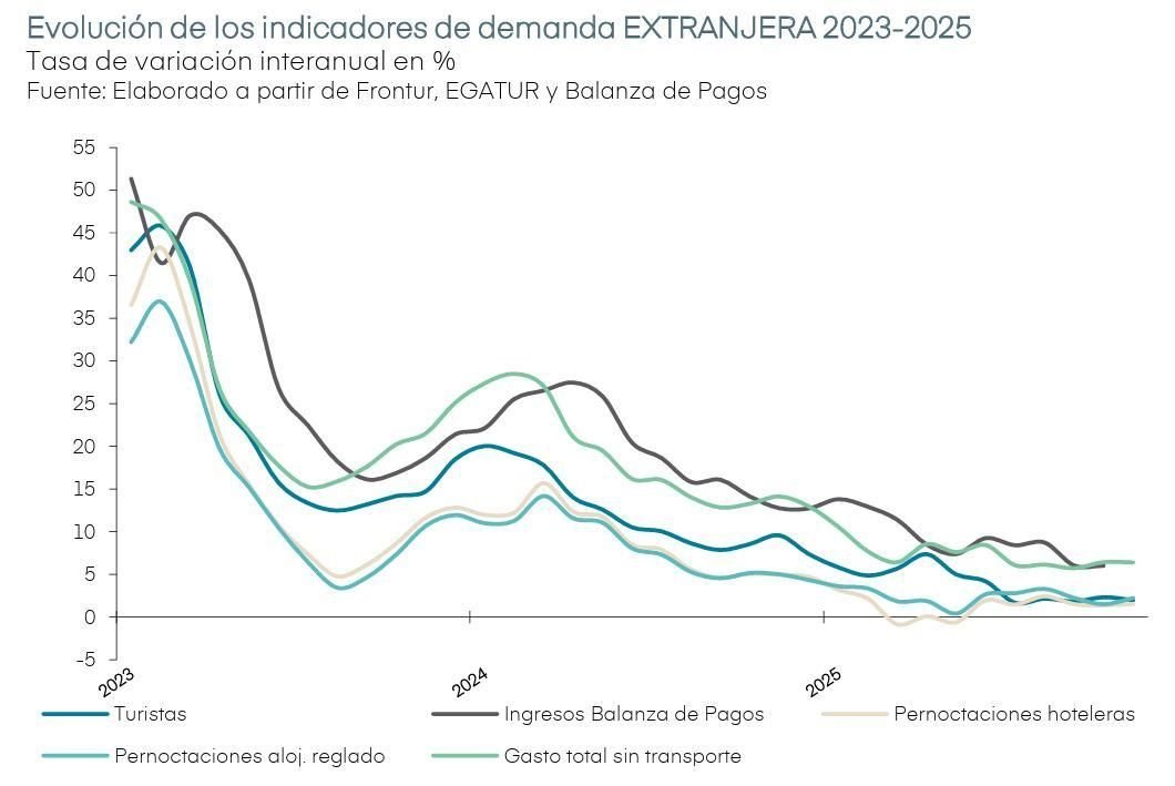 ¿Agotamiento o calidad? España se ha quedado a las puertas de los 100 millones de turistas, que eran las previsiones para 2025, pero sí ha batido una marca, la de gasto. Vienen menos turistas, pero gastan más. Los viajeros desembolsaron 135.000 millones de euros, lo que supone un incremento del 6,8% en comparación con el ejercicio precedente, según datos del ministro de Industria y Turismo, Jordi Hereu, aprovechando la celebración esta semana en Madrid de Fitur, la mayor feria internacional de turismo. Si echamos la vista atrás y nos fijamos en el periodo 2019-2025, el gasto turístico creció un 20,4%, por encima del +10,9% en las llegadas. Exceltur, la asociación que agrupa a las 30 mayores compañías del sector, como todas las grandes hoteleras y las empresas de transporte como Iberia o Renfe, señala que la propensión de la demanda extranjera a seguir manteniendo e incluso incrementando sus niveles de gasto en destino, aunque, en algunos casos, sea a costa de reducir la duración de sus viajes a España.