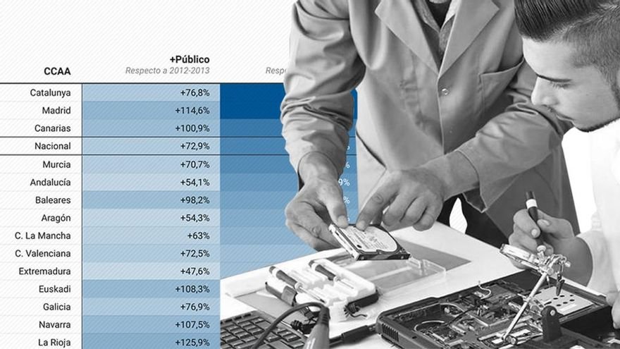 Pero la situación, advierte CCOO, no es uniforme por todo el país ni está cerca de serlo. El sindicato explica que hay tres grupos distintos de autonomías en función de cómo han abordado la development de la FP y de la presencia de lo público (o no).