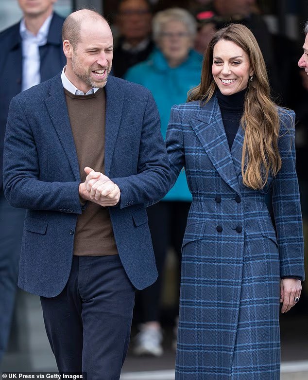 Mientras Kate estaba radiante con el abrigo azul real, el príncipe William optó por un suéter azul marino que complementaba perfectamente su look.