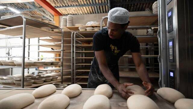 Djogo Barri lleva una camiseta negra en la que en letras amarillas puede leerse “El pan es harina, agua, sal, tiempo y esperanza” (“El pan es harina, agua, sal, tiempo y esperanza”). En su caso, podemos decir que esa frase es una literalidad porque ha sido su trabajo en el mundo del pan artesanal el que le ha dado esperanza en el futuro.