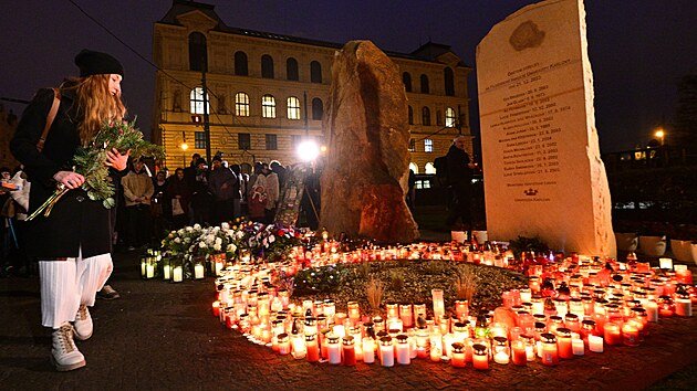El domingo por la tarde se celebra una conmemoración silenciosa de las víctimas del edificio en la plaza agrietada de Jan Palach, donde el trágico acontecimiento se recuerda con una escultura de aproximadamente un metro de largo frente al edificio de la facultad.