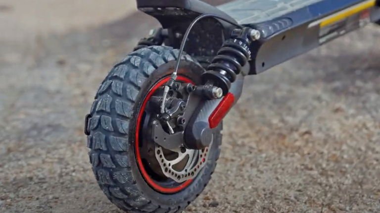 Monta neumáticos que te hacen moverte por terrenos angostos como pocos patinetes he visto