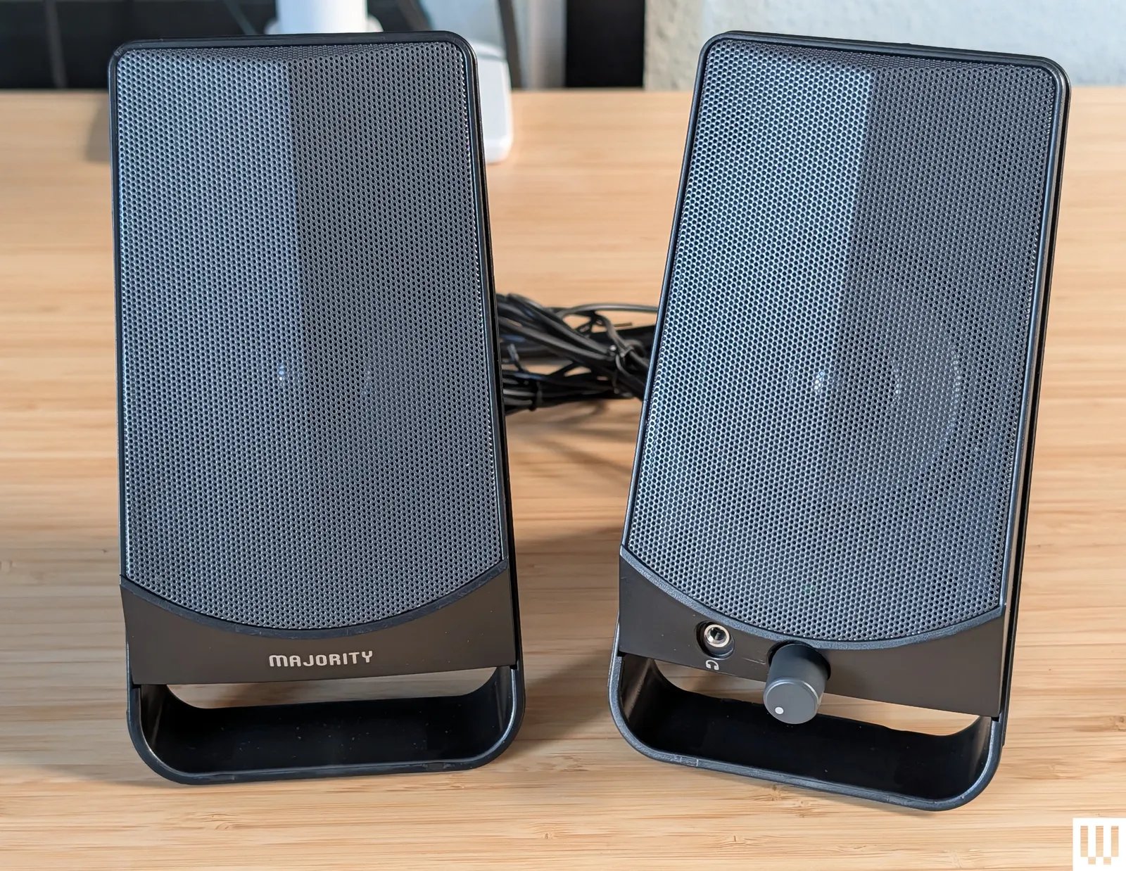 Altavoces de escritorio Majority DX10 por £ 15: Carecen de graves y claridad general, pero estos parlantes alimentados por USB son los más baratos que he probado. Estos parlantes de rango completo de 10 vatios y 2,5 pulgadas están inclinados hacia los oídos y tienen un dial de encendido y volumen simple. También hay un puerto para auriculares de 3,5 mm. Solo disponibles en el Reino Unido, podrían ser suficientes si tu presupuesto es muy ajustado.