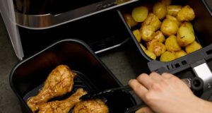 Esta freidora de aire, con dos cestas y capacidad de 9L,...
